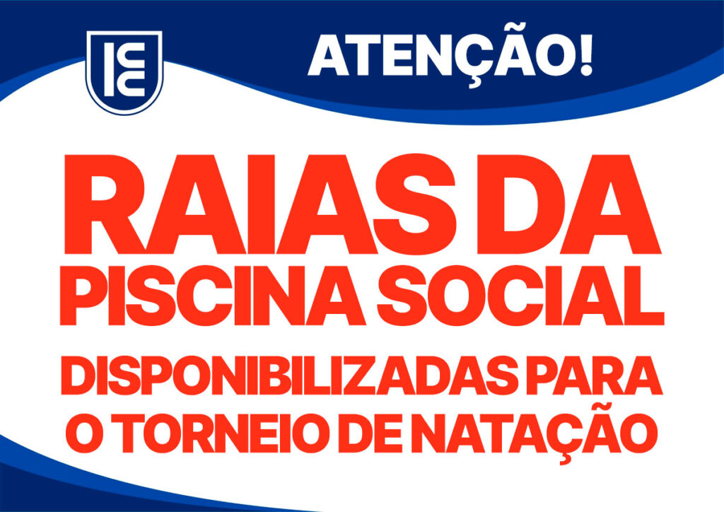 Prezados associados, informamos que as duas raias sinalizadas na piscina social foram disponibilizadas para o Torneio de Natação deste sábado (23/09). Importante lembrar que o acesso para as raias da piscina social é somente para nadadores, com limite máximo de 10 por vez.