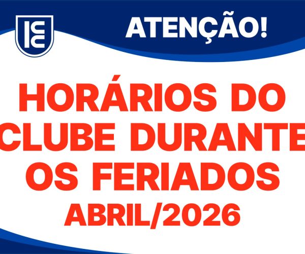 Confira os horários de funcionamento do Clube durante os feriados: 03/04 (Sexta-feira – Santa) 06/04 (Segunda-feira – São Benedito) Clube: 06h às 18h Restaurantes: 10h às 18h Academia: 07h às