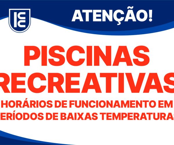 Informamos que, devido às baixas temperaturas, poderão ocorrer ajustes nos horários de funcionamento da Piscina Recreativa, com o objetivo de preservar o aquecimento da água para garantir mais conforto aos